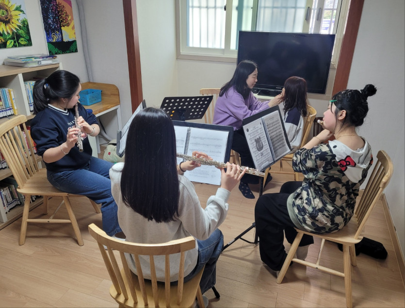 양덕2동지역아동센터 - 2월19일 플룻앙상블 수업 사진입니다.