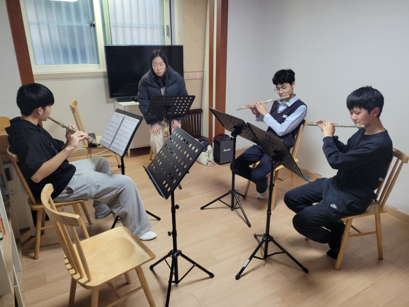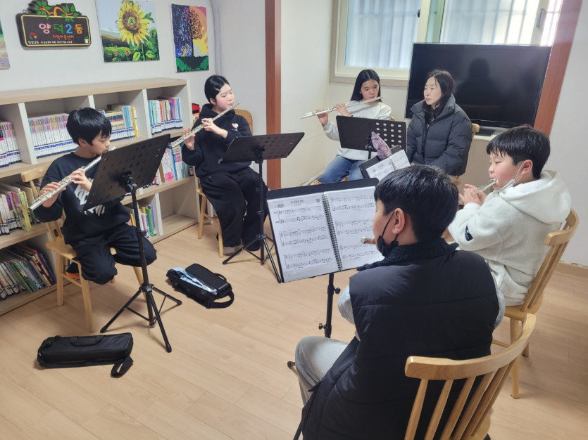 양덕2동지역아동센터 - 2월3일 플룻앙상블 수업 사진입니다.
